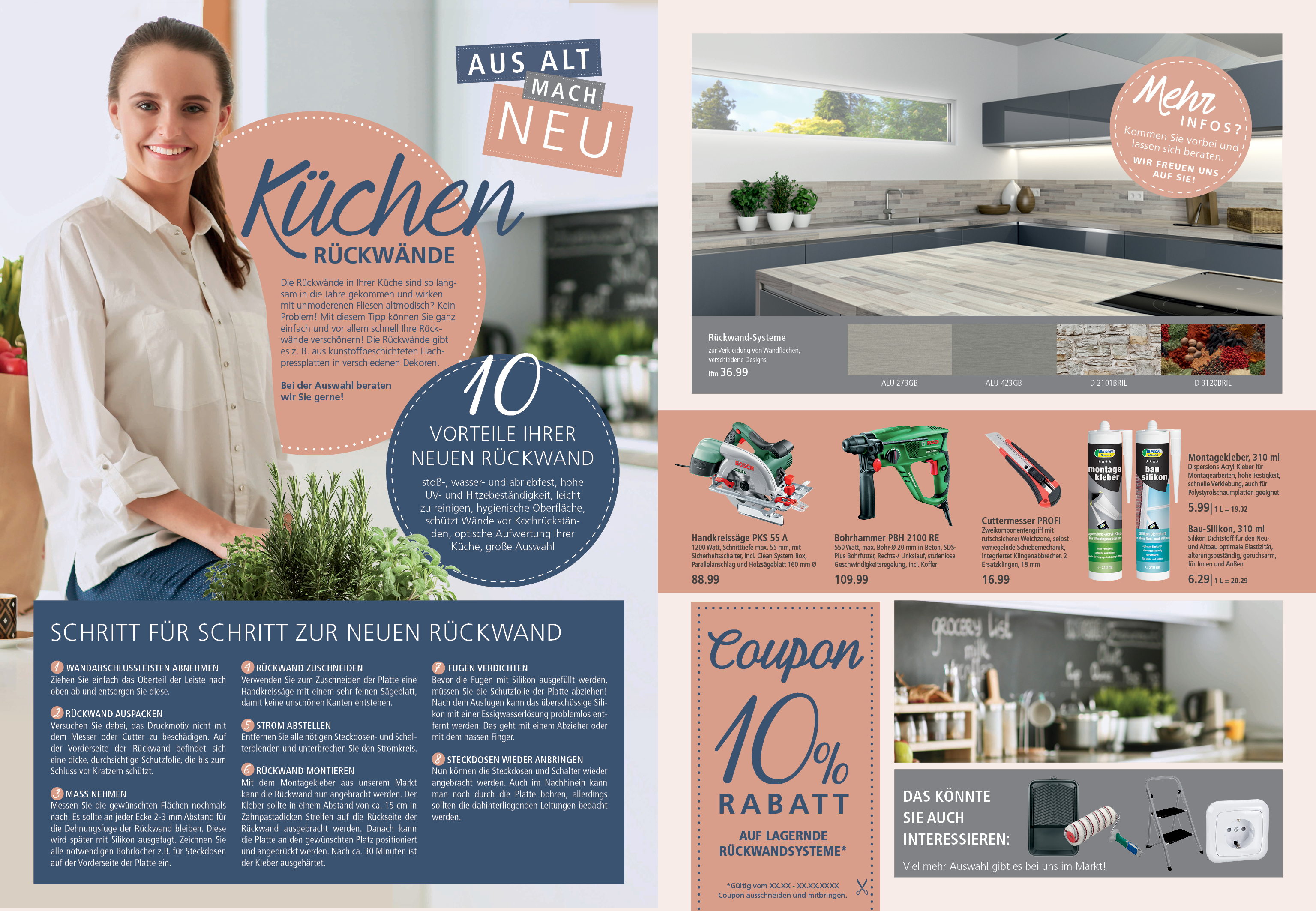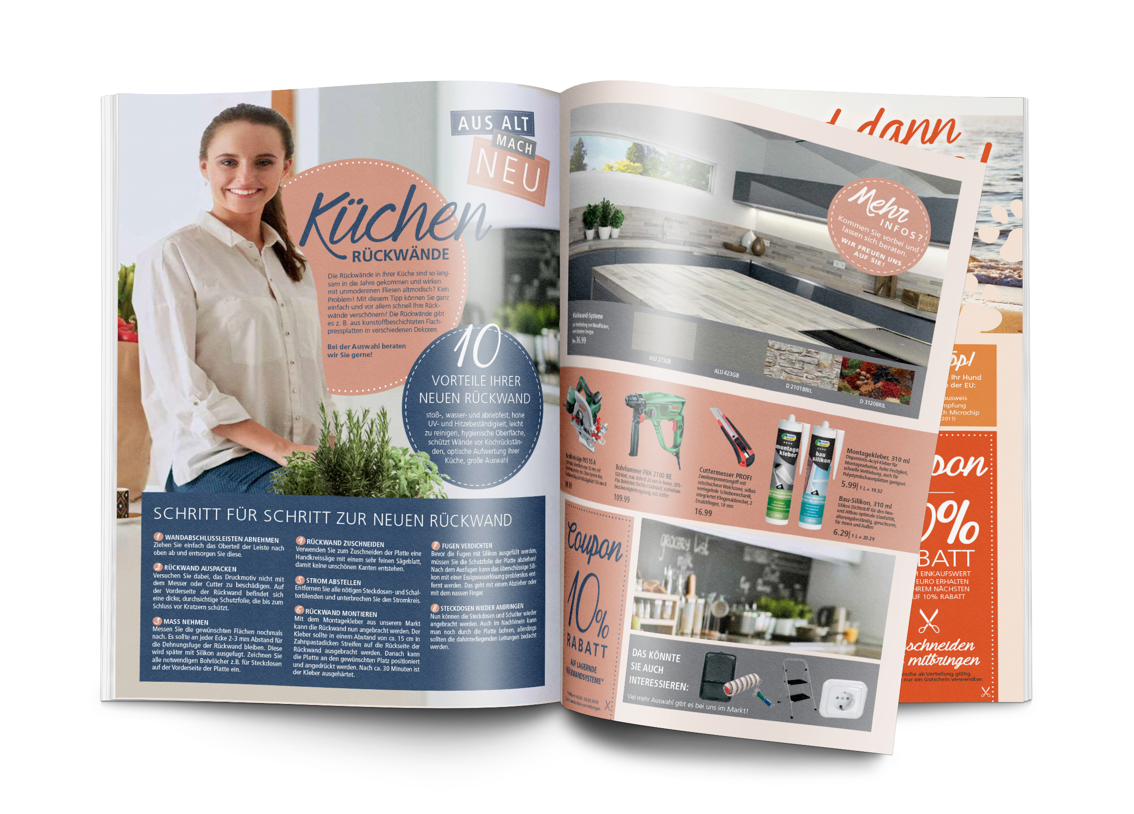 Prospektdoppelseite DIN A4 bzw. DIN A3 Querformat inkl. Individualisierung der Artikel, Preise, Events und Coupons.