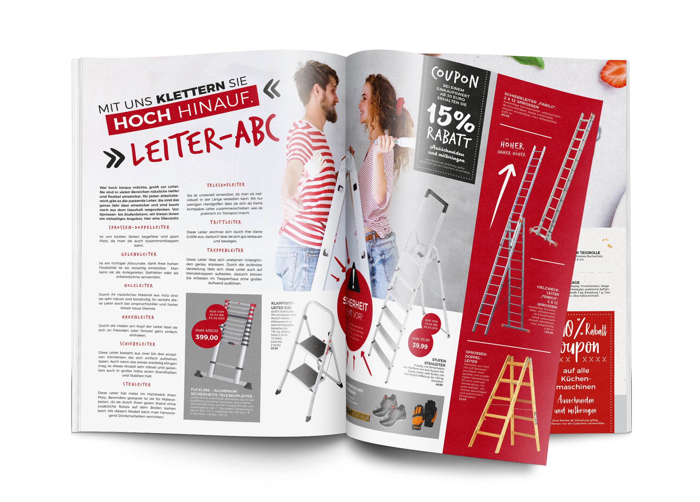 Prospektdoppelseite DIN A4 bzw. DIN A3 Querformat inkl. Individualisierung der Artikel, Preise, Events und Coupons.